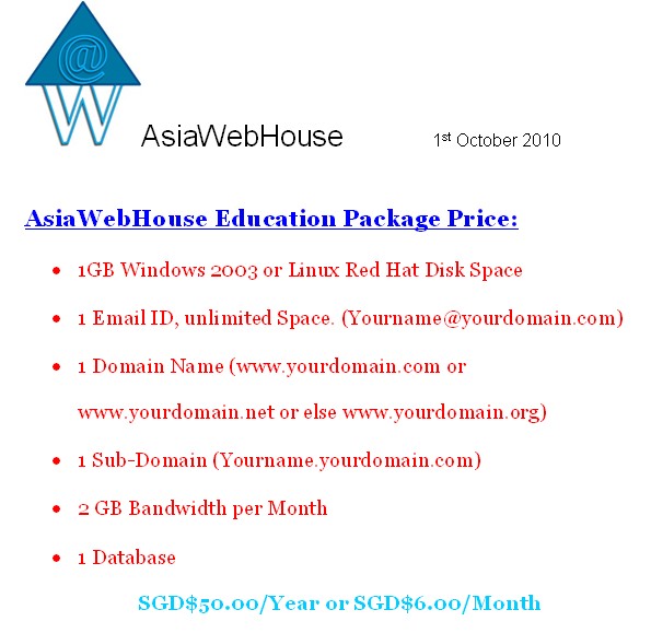 AsiaWebHouse Education Package Top Up